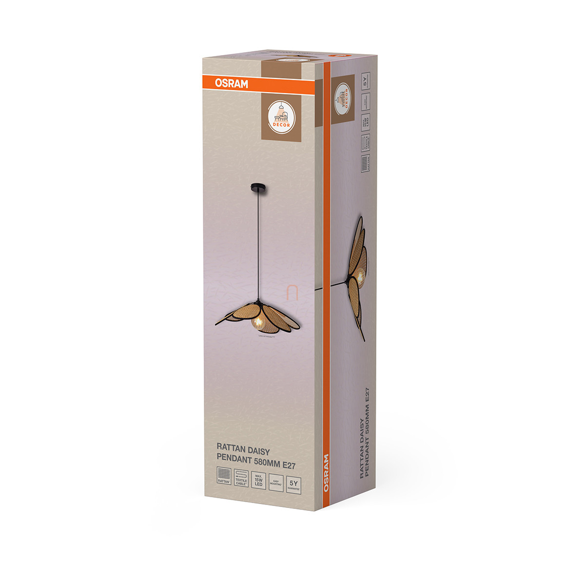 Rattan függesztett lámpa, 58 cm - Osram Decor Rattan Daisy, 1xE27 foglalattal, 220-240 V