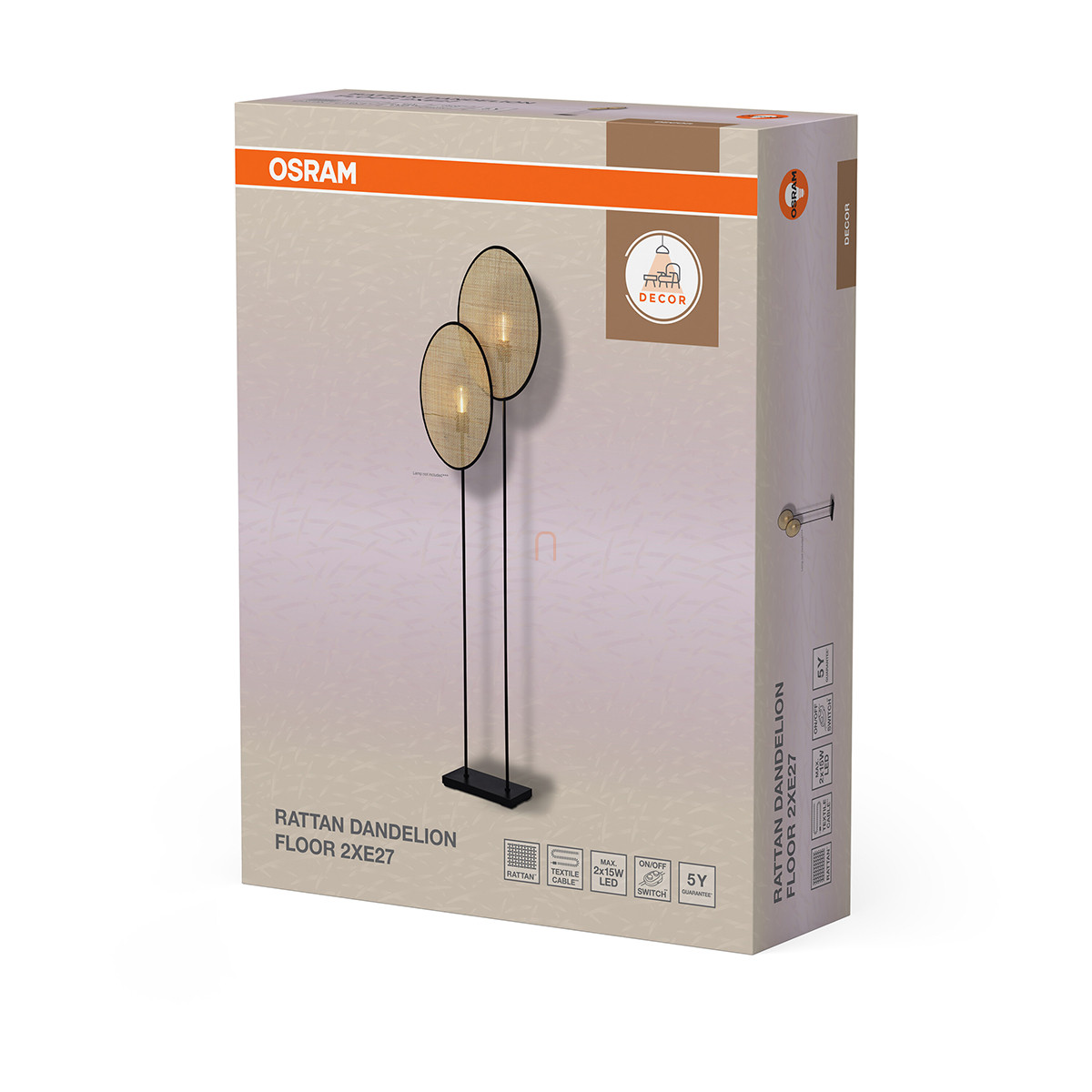 Állólámpa, 170 cm - Osram Decor Rattan Dandelion, 2xE27 foglalattal, 220-240 V