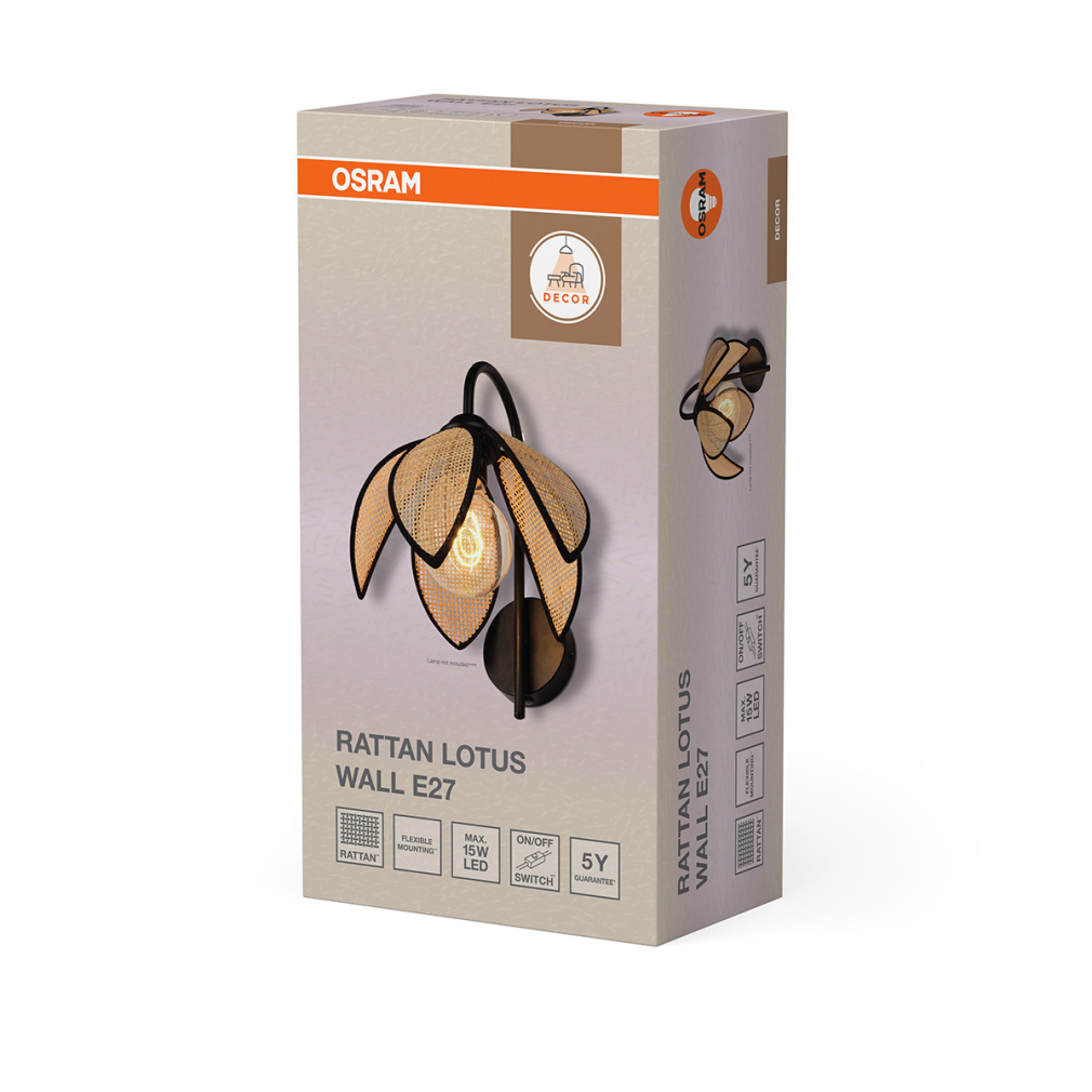 Rattan fali lámpa - Osram Decor Rattan Lotus, 1xE27 foglalattal, 220-240 V