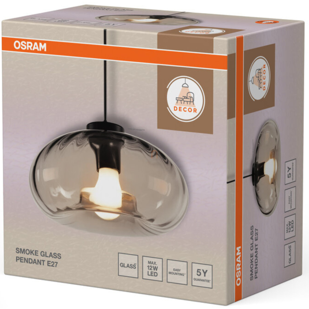 Üveg függesztett lámpa - Osram Decor Smoke Glass, 1xE27 foglalattal, 220-240 V
