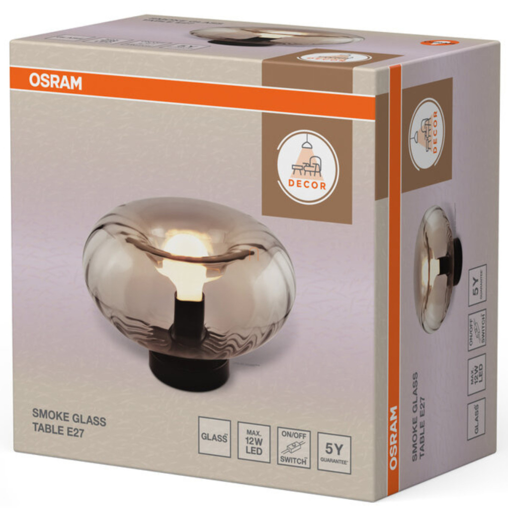Asztali üveg lámpa, 17,6 cm - Osram Decor Smoke Glass, 1xE27 foglalattal, 1,5 méteres kábellel, 220-240 V