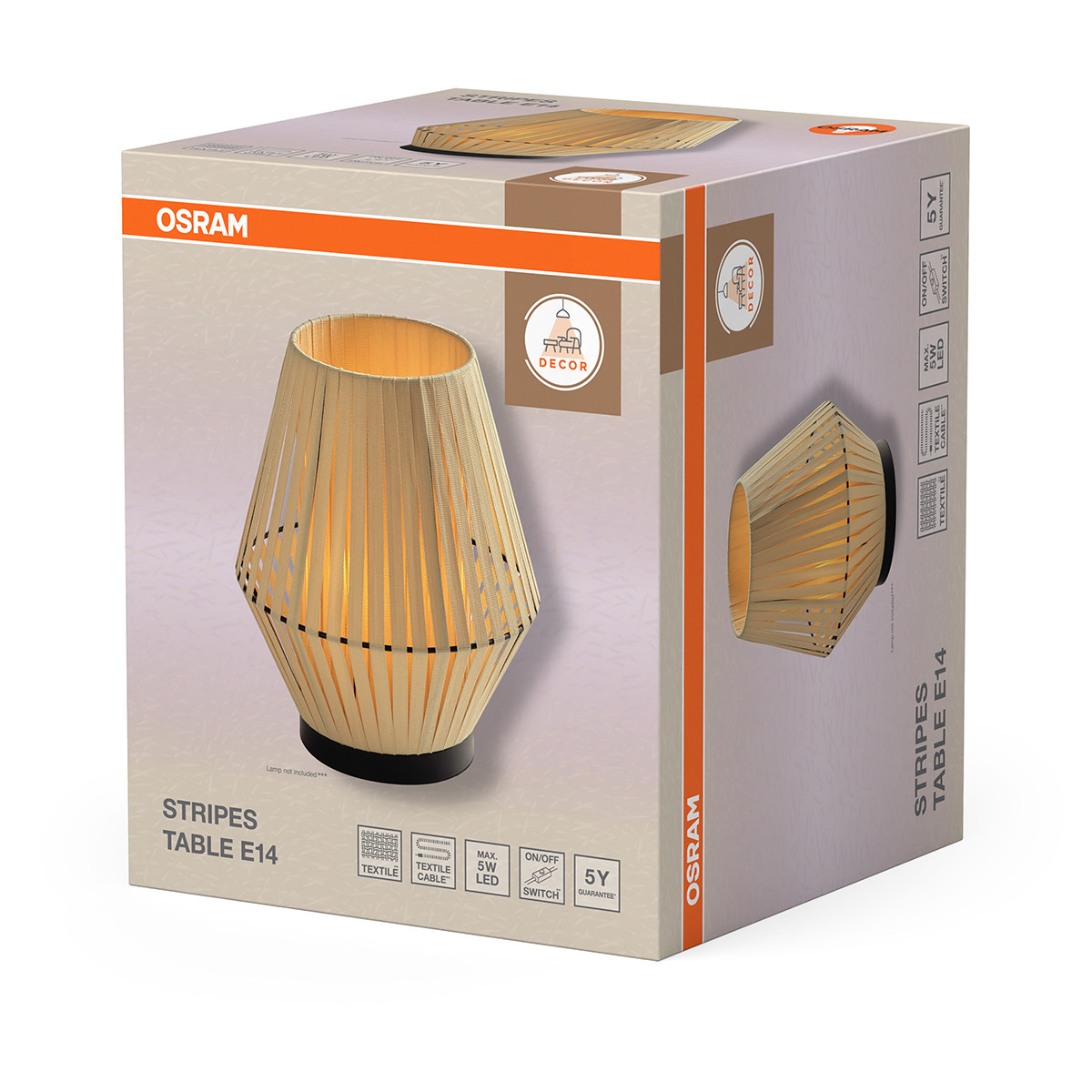 Asztali natúr hangulatlámpa, 24,5 cm - Osram Decor Stripes, 1xE14 foglalattal, 1,5 méteres kábellel, 220-240 V