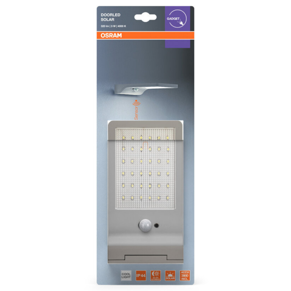 Osram napelemes ajtóvilágító LED lámpa fény és mozgásérzékelővel, hidegfehér, 3 W, ezüst