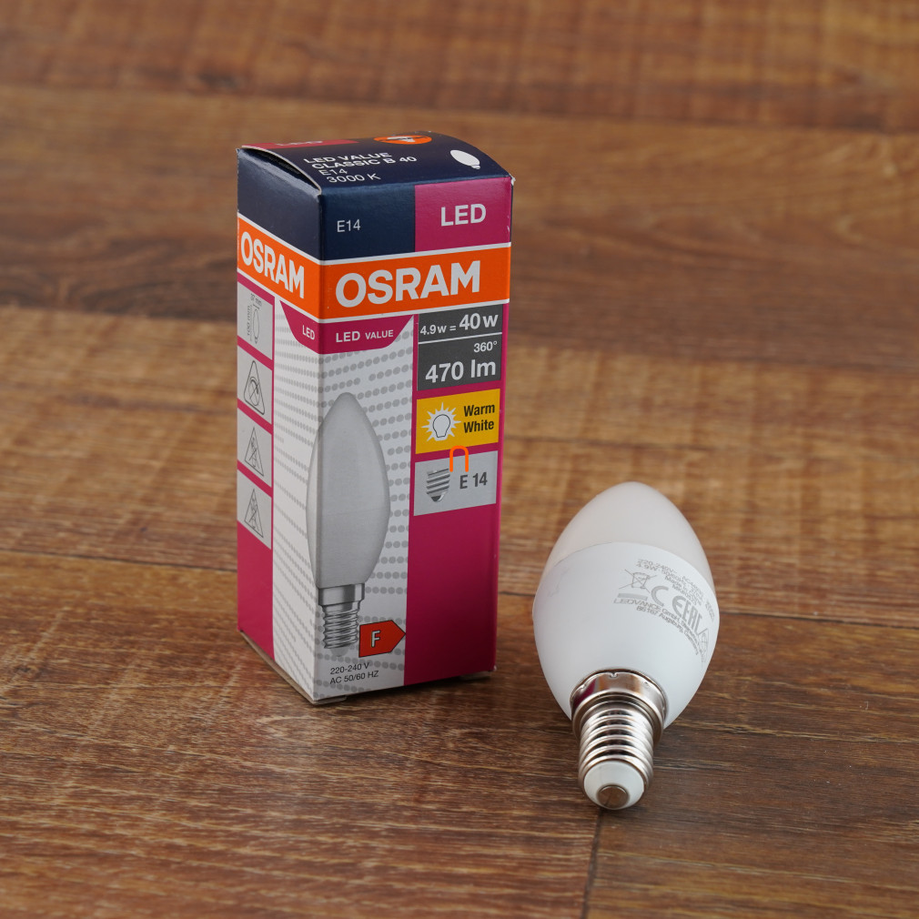 Osram E14 LED Value Classic 4,9W, 470 lm, 3000 K, 40 W izzó helyett
