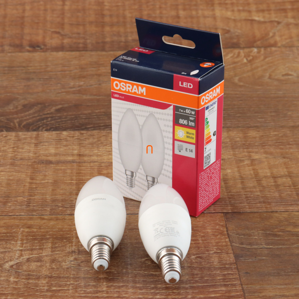 Osram E14 LED Value Classic gyertya fényforrás 7,5W, 806 lm, 2700 K, 60 W izzó helyett (2 darabos)