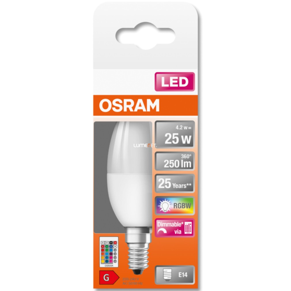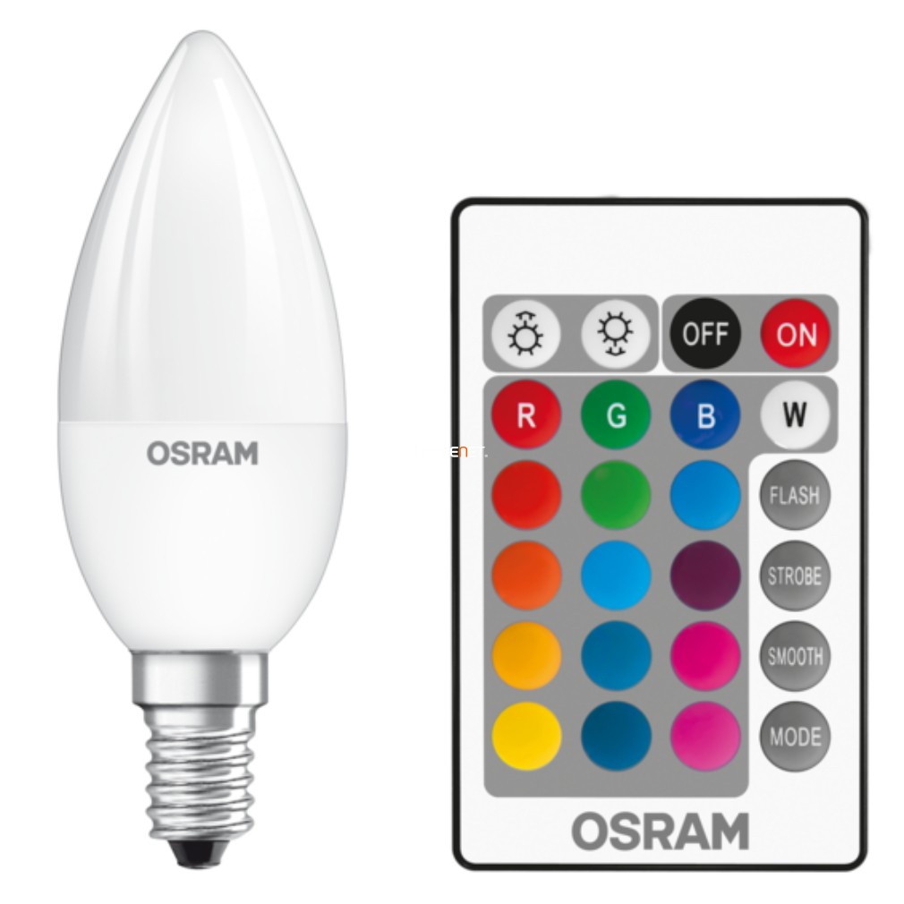 Osram E14 RGBW LED Star+ gyertya 4,2W 250lm 2700K melegfehér 200° - 25W izzó helyett, távirányítóval