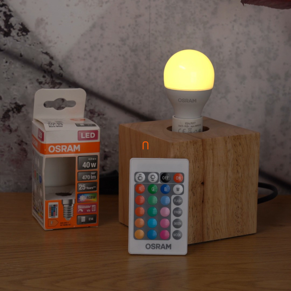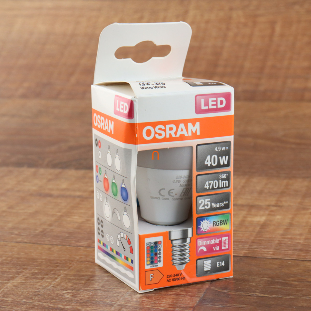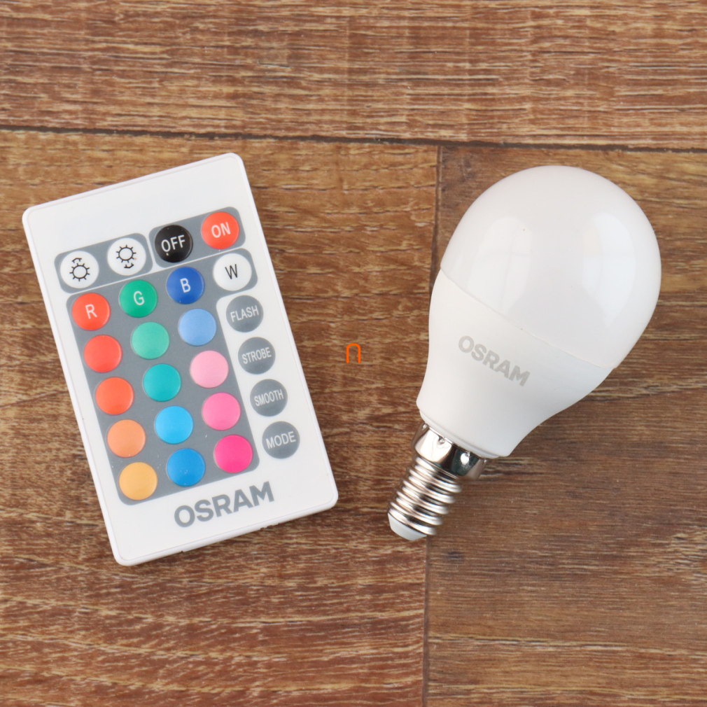Osram E14 RGBW LED Star+ kisgömb 4,9W 470lm 2700K melegfehér 200° - 40W izzó helyett, távirányítóval