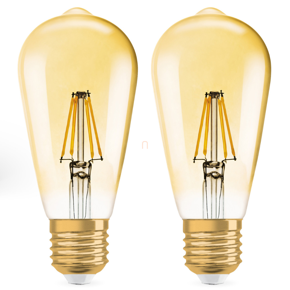 Osram E27 LED 6,5W, 725 lm, 2400 K, candlelight, dimmelhető, arany színű színű üveg-52 W izzó helyett, 2 darabos - Vintage 1906 DIM Classic Edison Gold filament