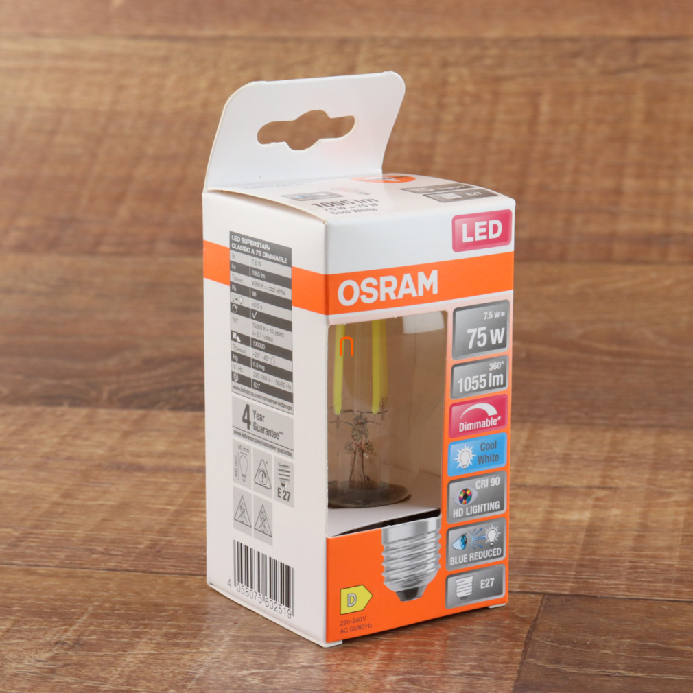 Osram E27 LED SStar+ 7,5W 1055lm 4000K hidegfehér, szabályozható 300° - 75W izzó helyett