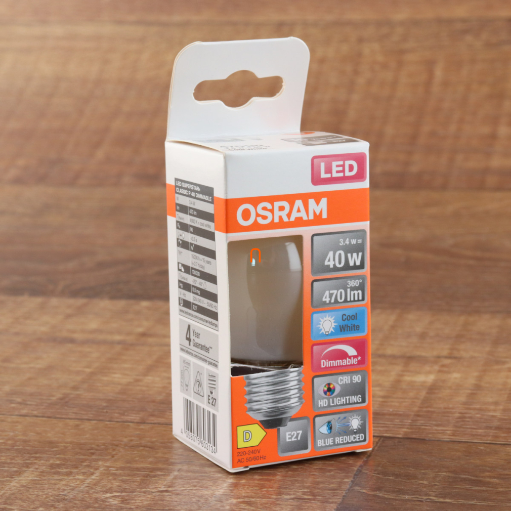 Osram E27 LED SStar+ kisgömb 3,4W 470lm 4000K hidegfehér, szabályozható 300° opál - 40W izzó helyett
