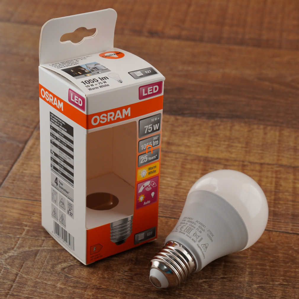Osram E27 LED Star+ 10W 1055lm 2700K melegfehér, fényérzékelővel - 75W izzó helyett