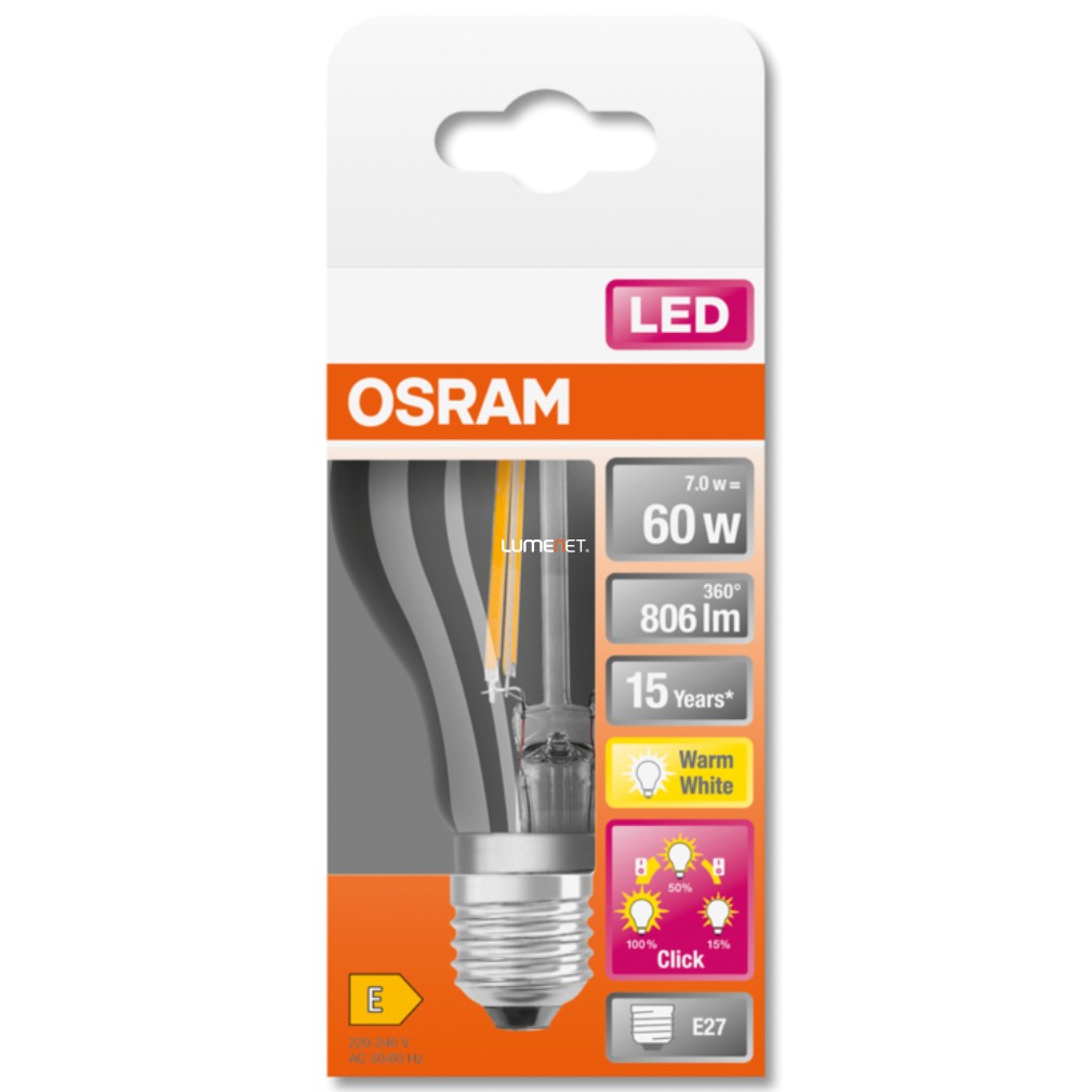 Osram E27 LED Star+ 7W 806lm 2700K melegfehér, szabályozható 300° - 60W izzó helyett