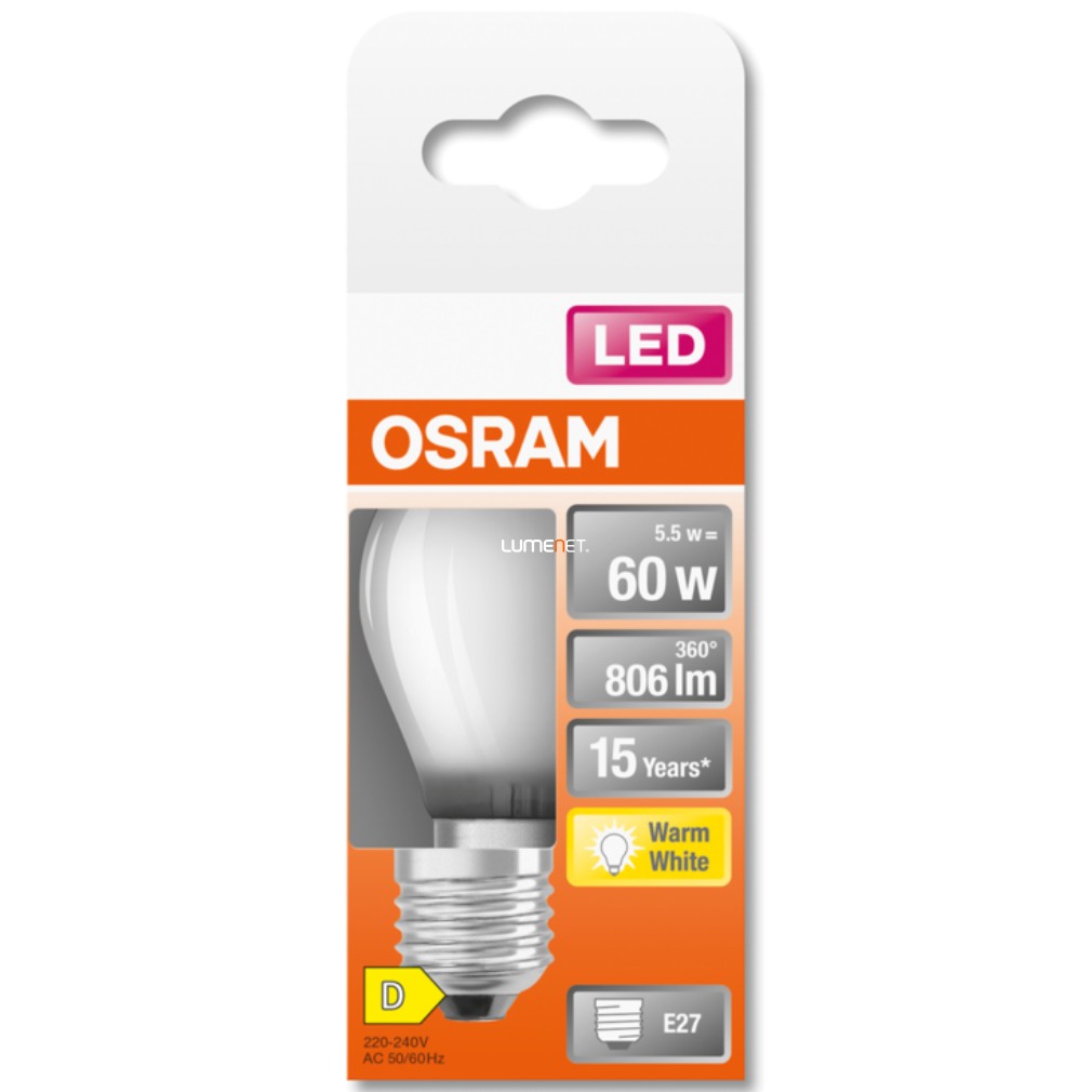 Osram E27 LED Star kisgömb 5,5W 806lm 2700K melegfehér 300° opál - 60W izzó helyett