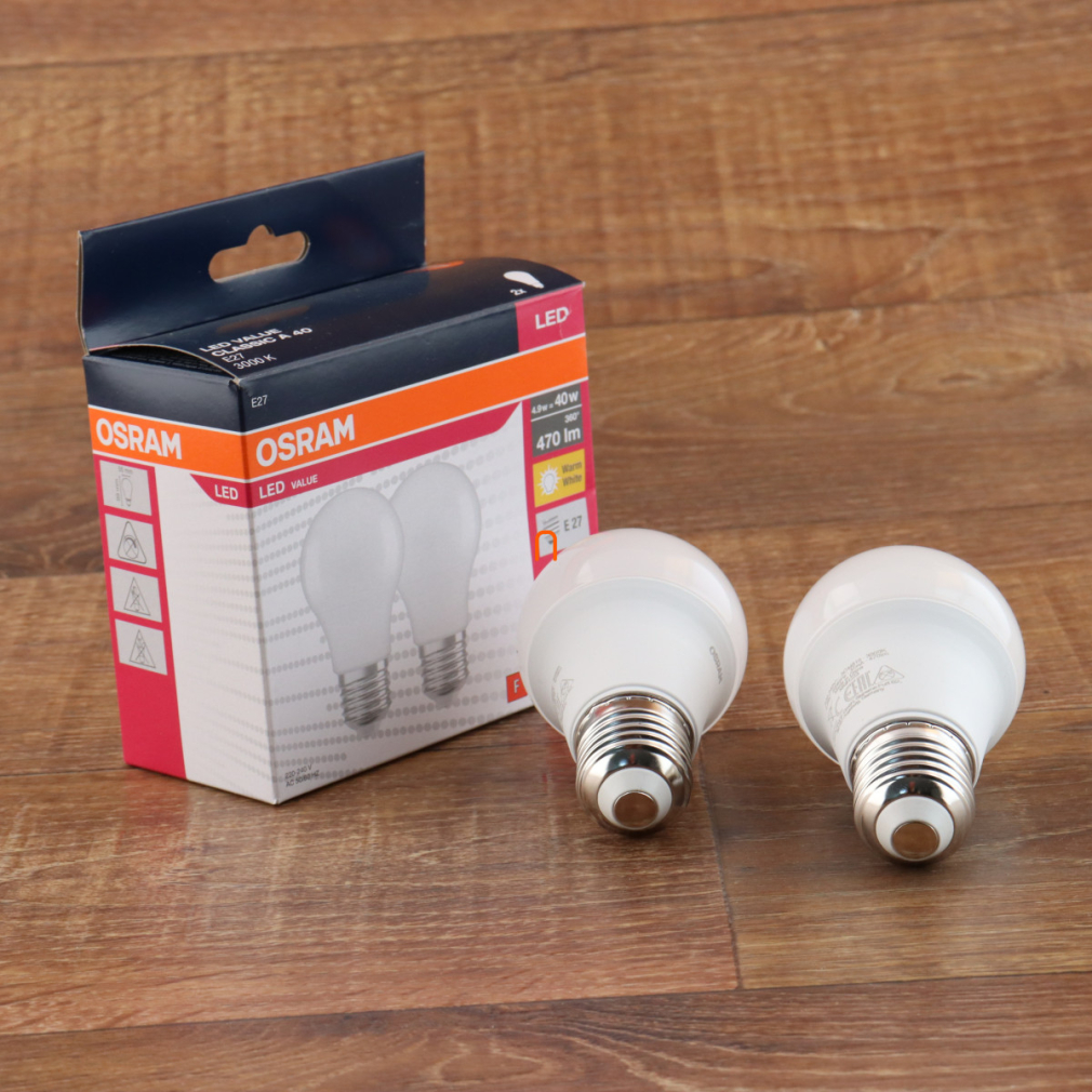 Osram E27 LED Value Classic 4,9W, 470 lm, 3000 K, 40 W izzó helyett (2 darabos)