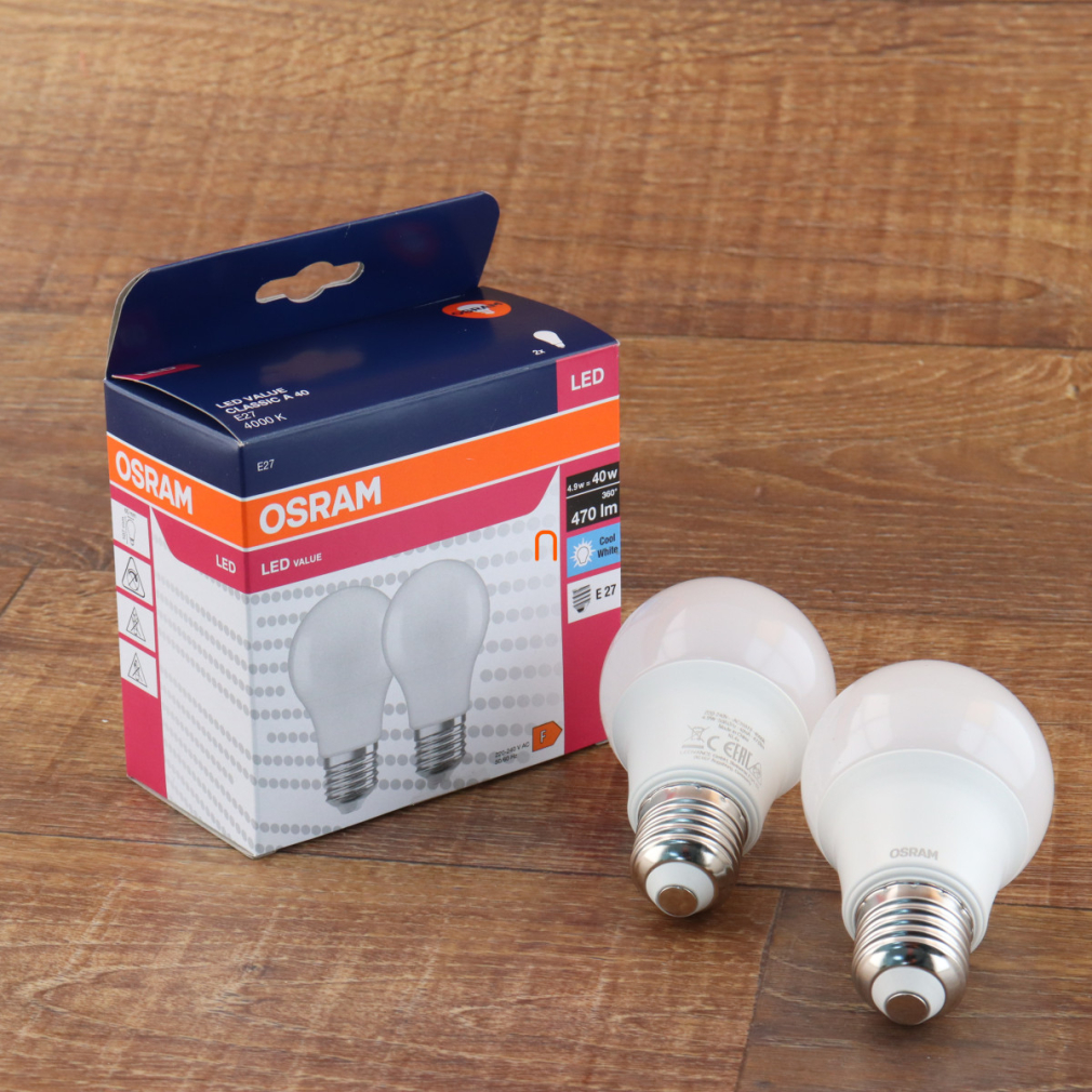 Osram E27 LED Value Classic 4,9W, 470 lm, 4000 K, 40 W izzó helyett (2 darabos)