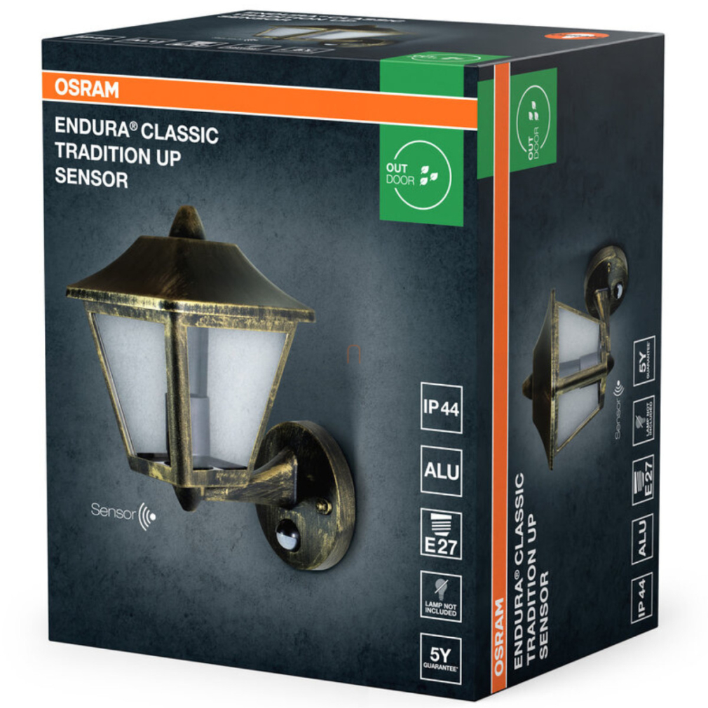 Osram kültéri fali lámpa fény és mozgásérzékelővel, antikolt (Endura Tradition Up)