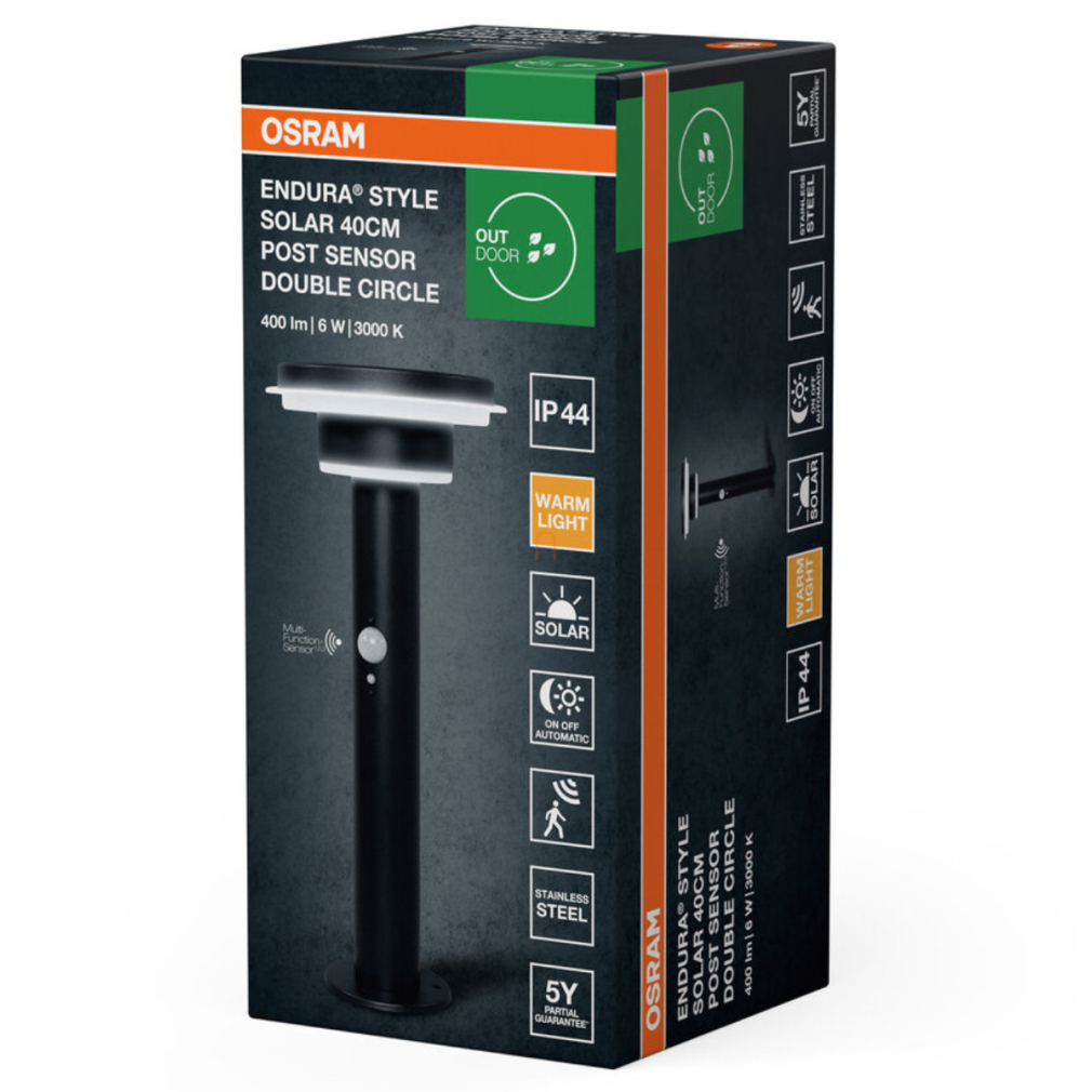 Osram kültéri napelemes állólámpa mozgásérzékelővel, melegfehér, 6 W, 40 cm, fekete (Endura Style Solar)