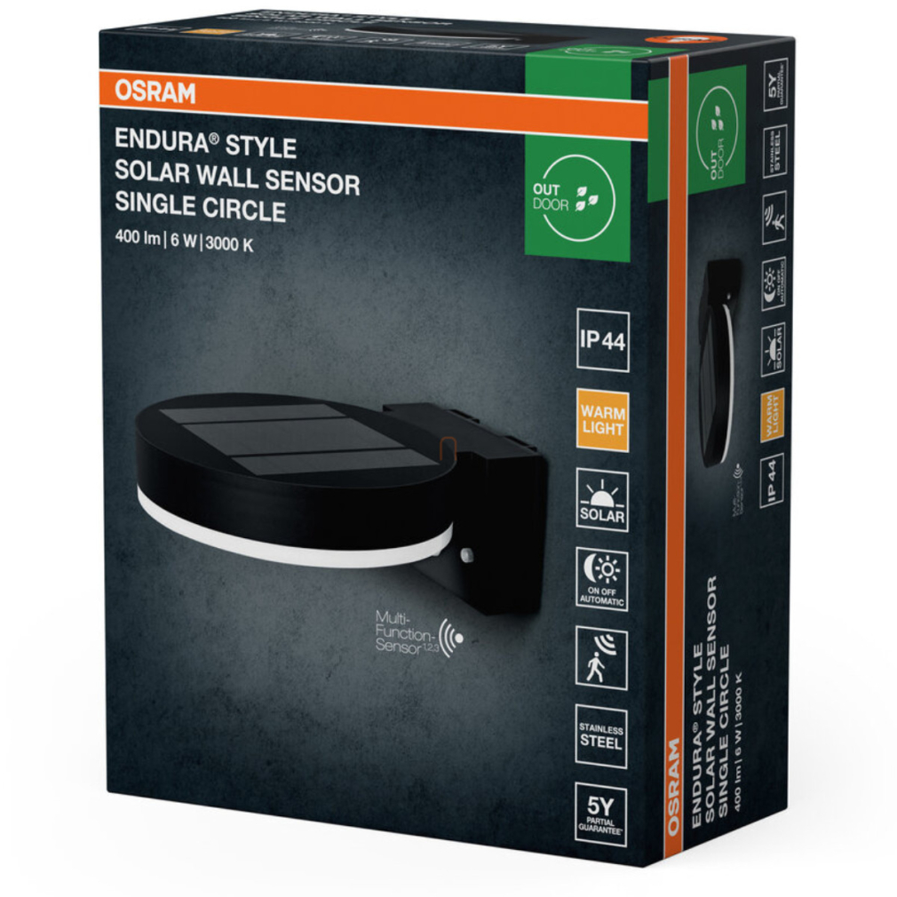 Osram kültéri fali LED lámpa, fény és mozgásérzékelővel, melegfehér, 6 W (Endura Style Solar)
