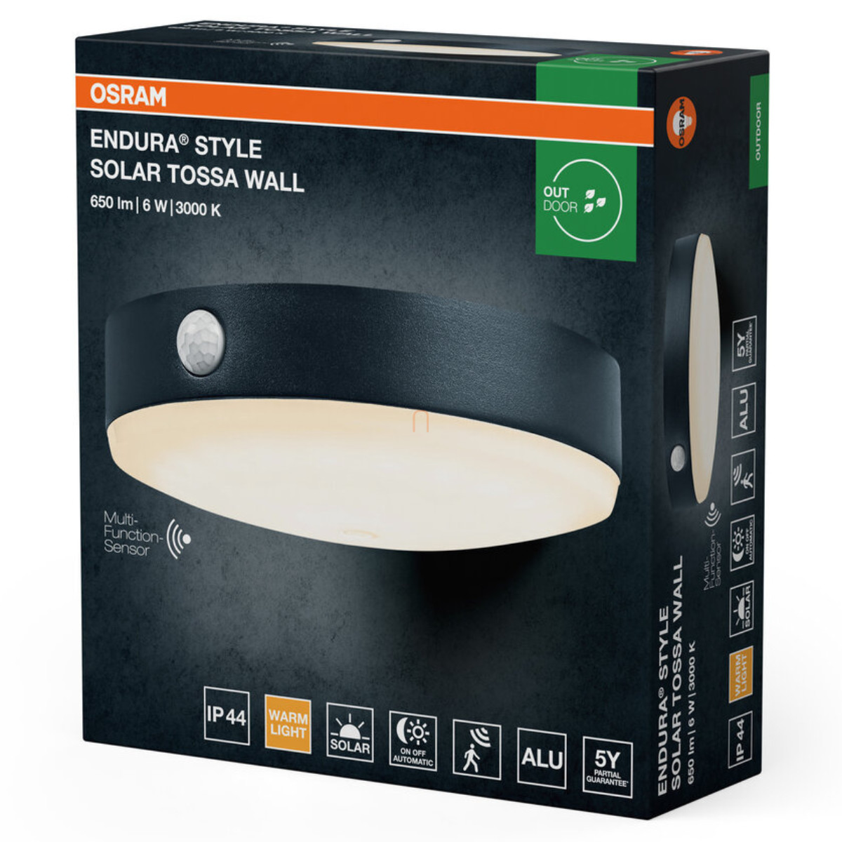 Osram kültéri napelemes fali LED lámpa mozgásérzékelővel, melegfehér, 6 W (Endura Style Tossa)
