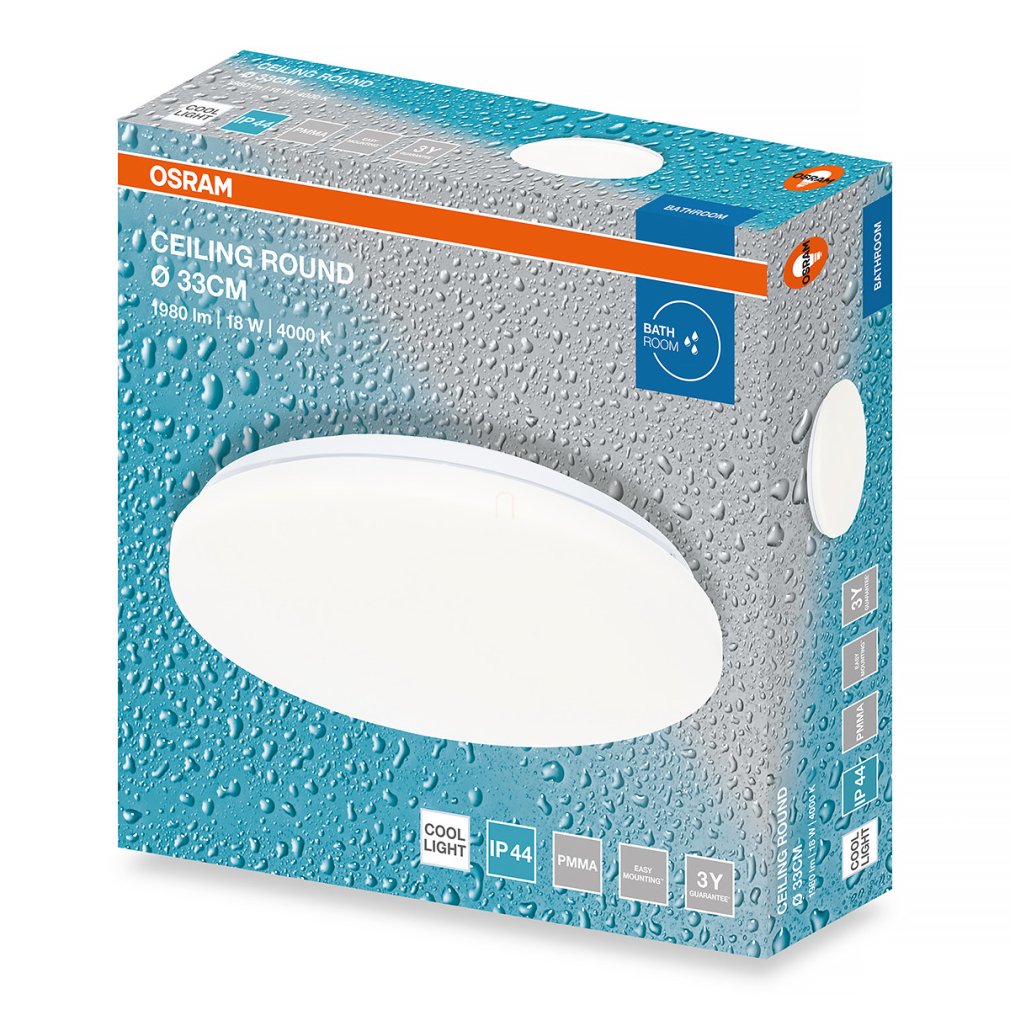 Osram fürdőszobai kerek mennyezeti LED lámpa, 18 W, hidegfehér fényű, 840 lm, IP44, matt fehér