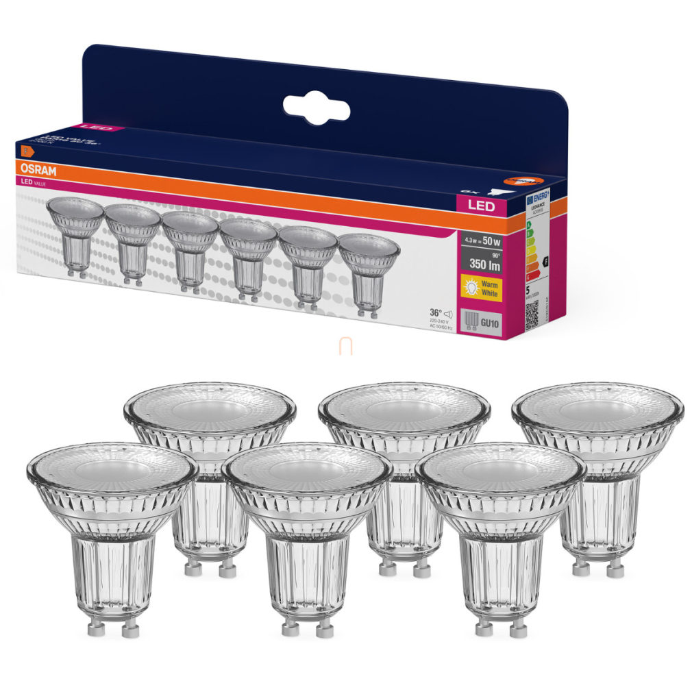 Osram GU10 LED 4,3W, 350 lm, 2700 K, melegfehér, áttetsző üveg-50 W izzó helyett, 6 darabos - Value Spot PAR16