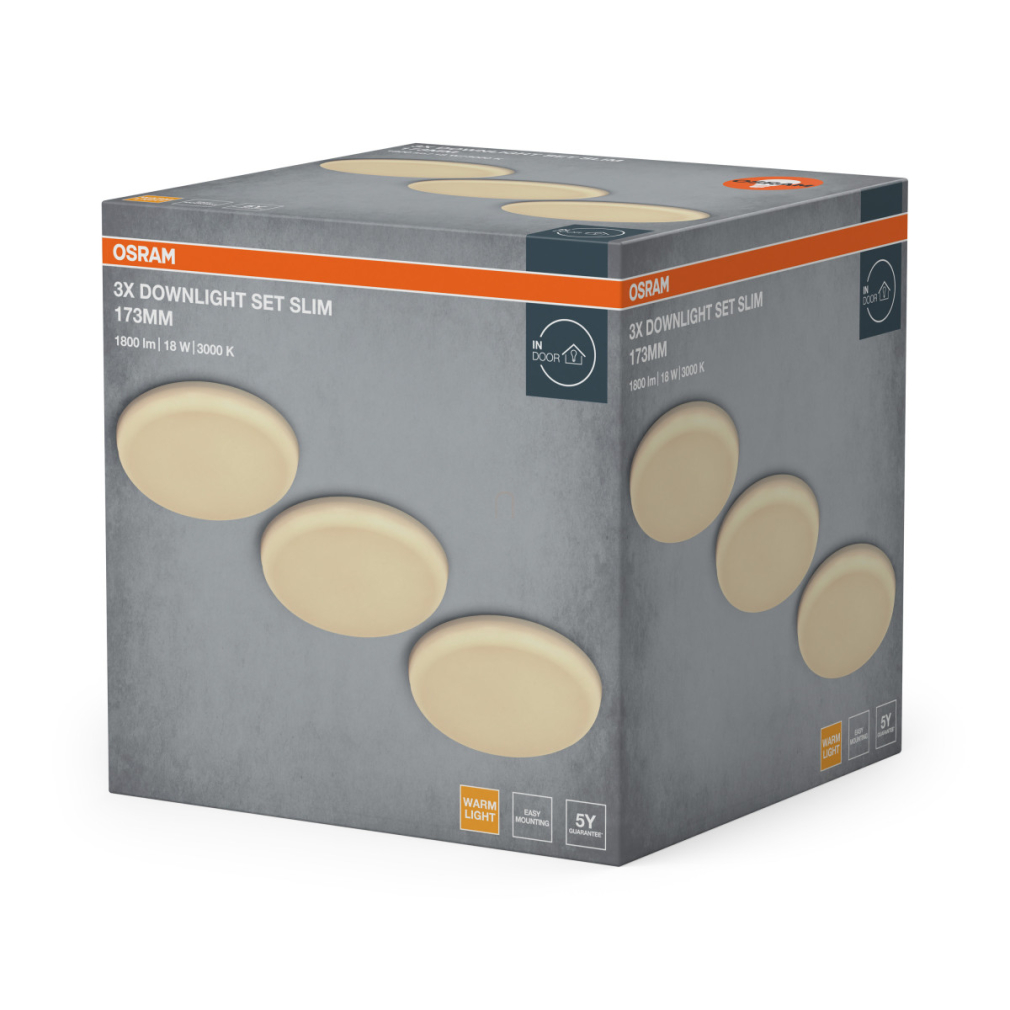 3 darabos Osram LED Downlight Adjustable Cut Out Slim fürdőszobai süllyesztett LED spot lámpa, 18W, 1800 lm, 3000K, állítható kivágási mérettel - 3 darabos