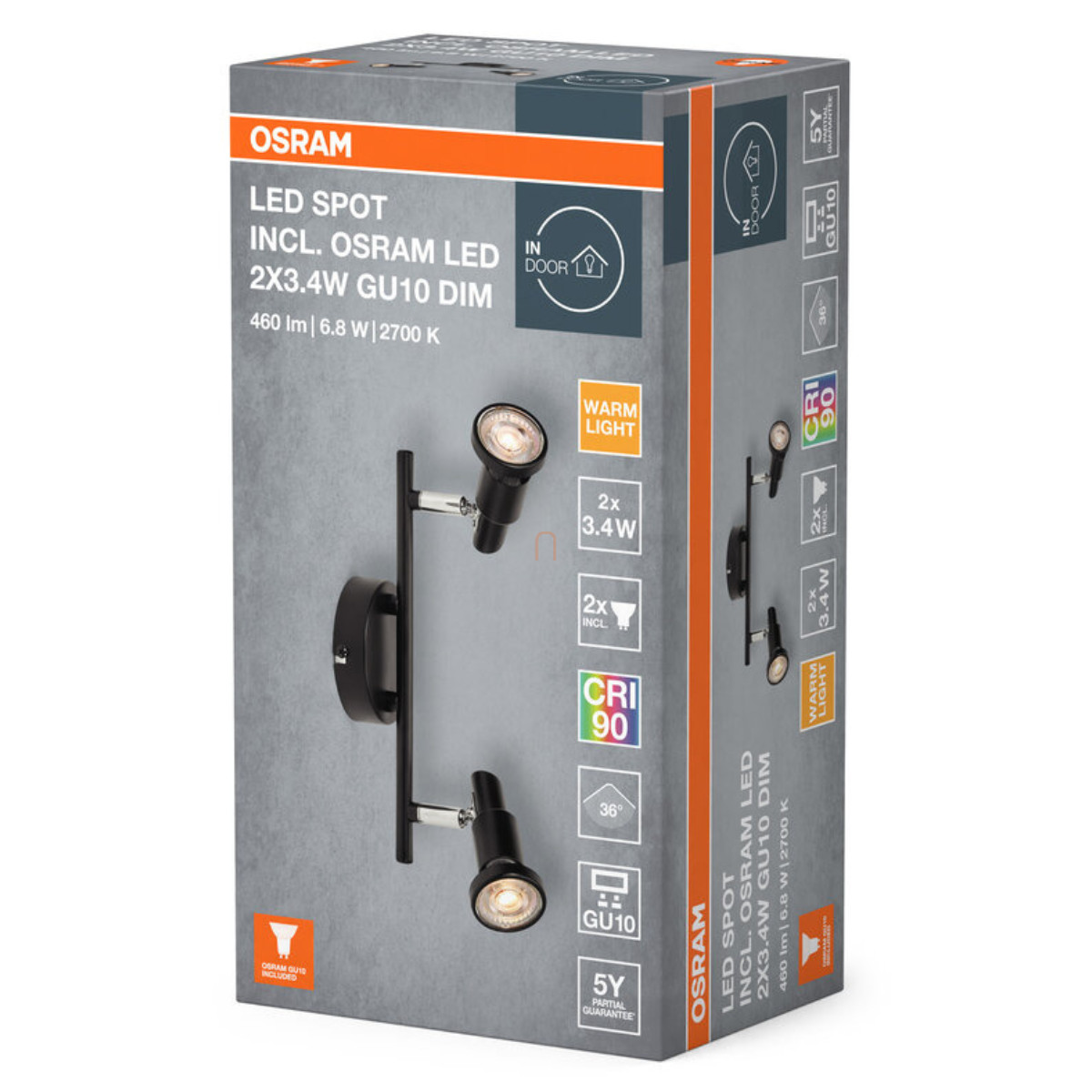 Osram LED spot GU10 karos spot lámpa LED fényforrással, fekete színben 2 foglalattal