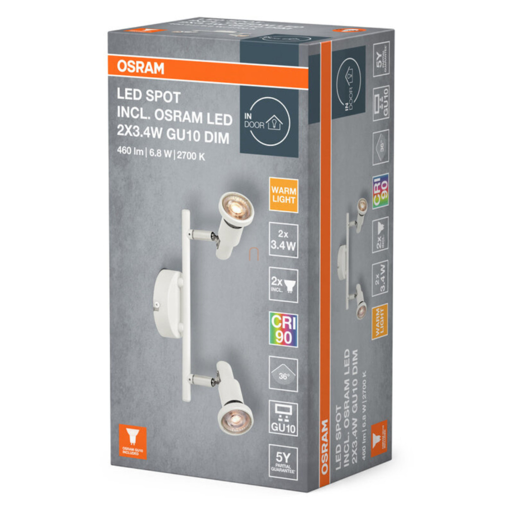 Osram LED spot GU10 karos spot lámpa LED fényforrással, fehér színben 2 foglalattal