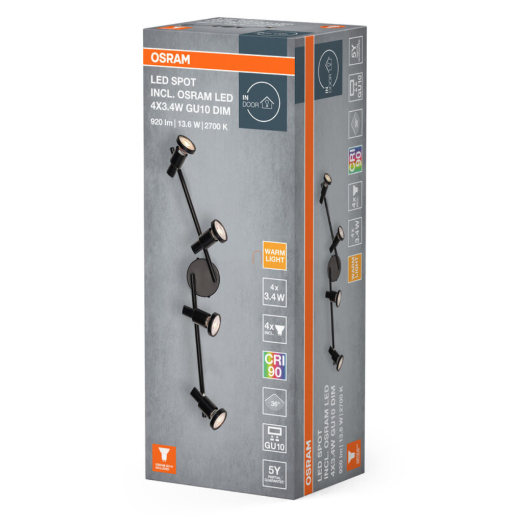 Osram LED spot GU10 karos spot lámpa LED fényforrással, fekete színben 4 foglalattal