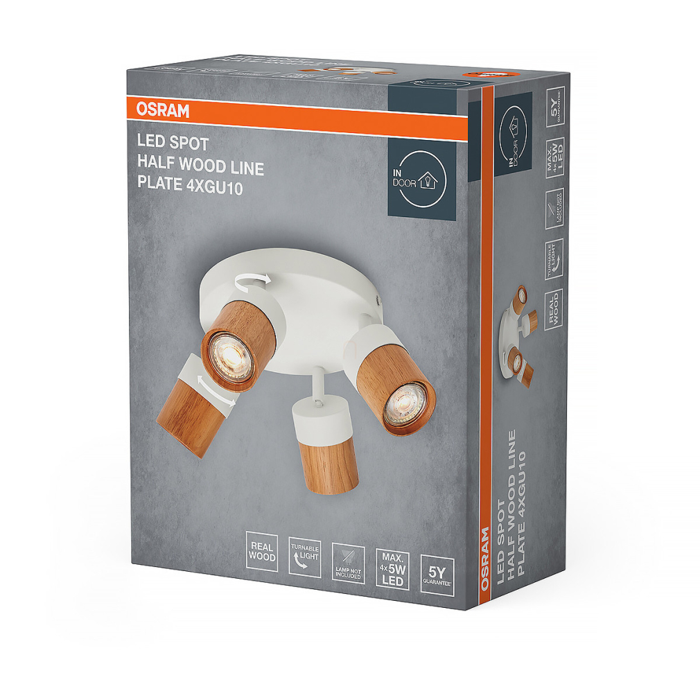 Osram LED Spot Half Wood Line mennyezeti spot lámpa 4xGU10 foglalattal, fa hatású