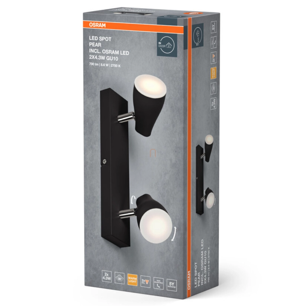 Osram spot lámpa fényforrással, két karos, fekete (Pearl)
