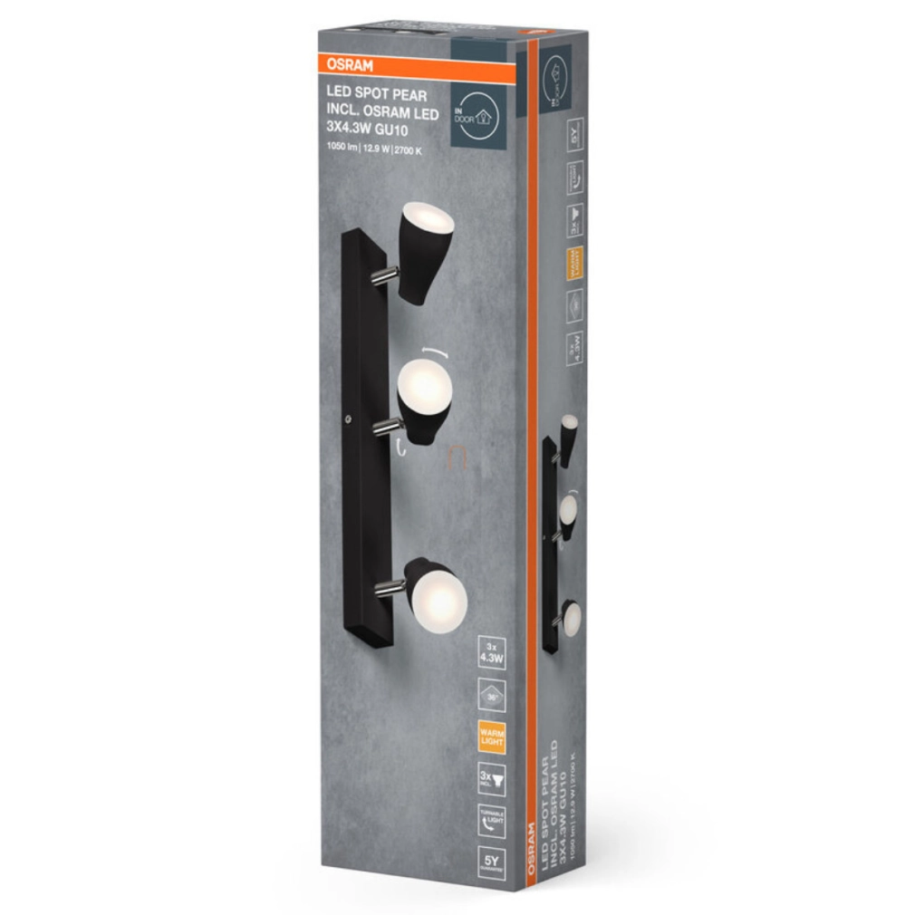 Osram spot lámpa fényforrással, három karos, fekete (Pearl)