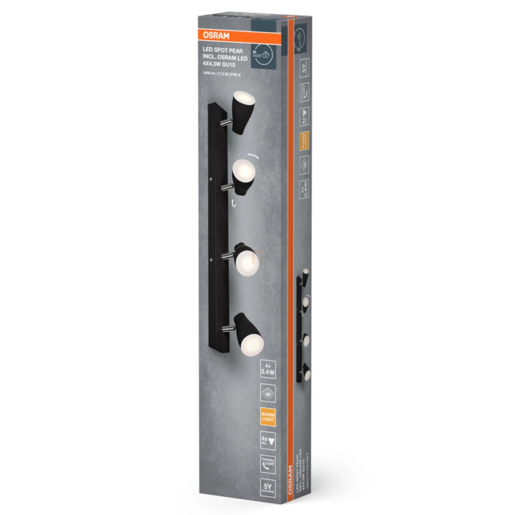 Osram spot lámpa fényforrással, négy karos, fekete (Pearl)