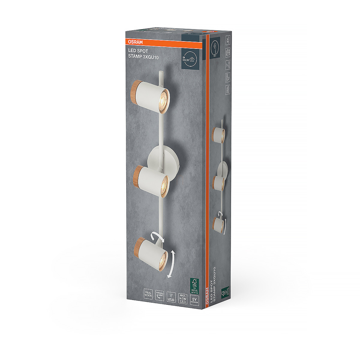 Osram LED Spot Stamp karos mennyezeti spot lámpa 3xGU10 foglalattal, fa hatású