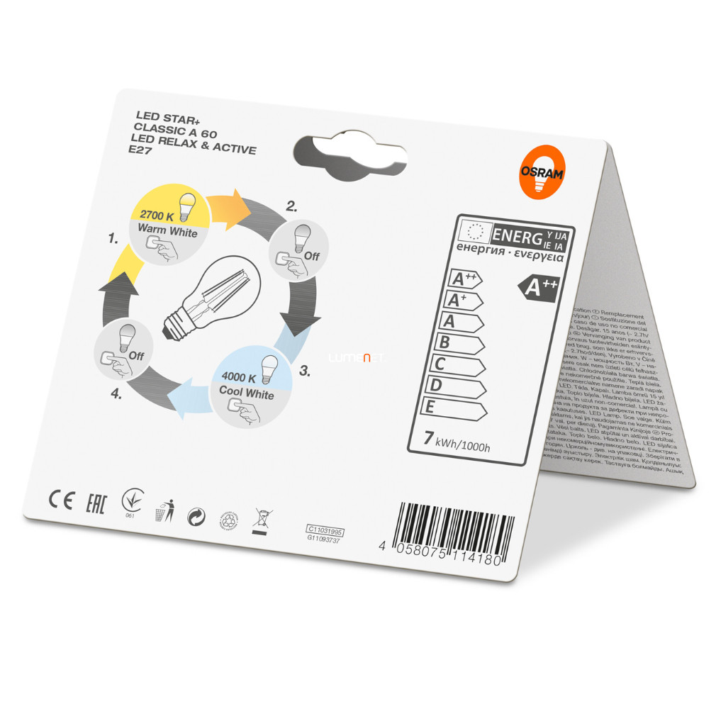 Osram Led Star+ A E27 LED 7W 806lm 2200-2700K - 60W izzó helyett
