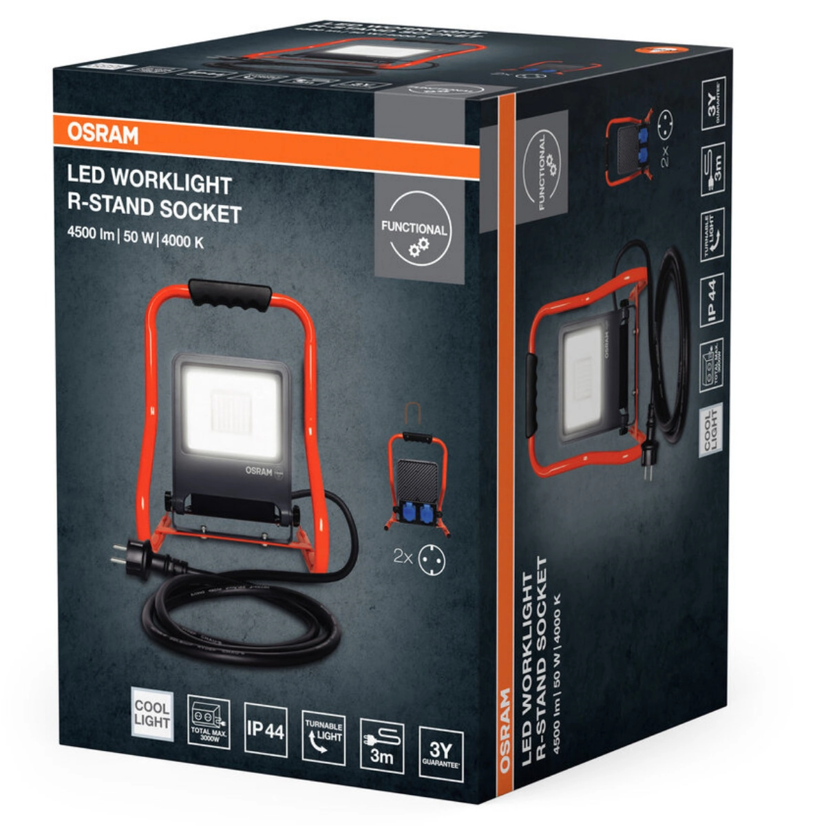 Osram kültéri LED reflektor dupla csatlakozóaljzattal, hidegfehér, 50 W (Worklight R-Stand)