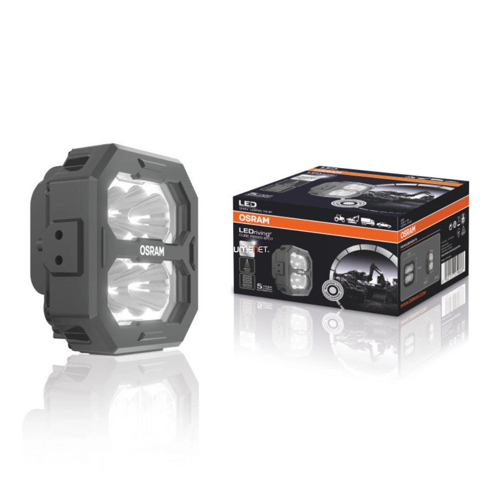 Az Osram Cube PX 1500 Spot egy kompakt, mégis rendkívül hatékony LED munkalámpa, amelyet kifejezetten azok számára fejlesztettek, akik precíz, nagy távolságú megvilágítást igényelnek professzionális környezetben. A 15 wattos fogyasztás mellett 1500 lumen fényáramot kibocsátó lámpa 6000 kelvines színhőmérséklettel világít, amely ragyogóan fehér fényt biztosít – ideális a sötét munkaterületeken való tájékozódáshoz. A keskeny fénysugár-mintázat (Spot) a célzott megvilágításhoz készült, és akár 110 méteres távolságot is elér, így tökéletes megoldást nyújt mezőgazdasági, építőipari vagy haszongépjárműveken végzett éjszakai munkákhoz, illetve olyan helyzetekben, ahol fontos a pontos fényirányítás. A robusztus, öntött alumíniumból készült ház és a törésálló polikarbonát lencse hosszú élettartamot biztosít még a legzordabb körülmények között is. Az IP6K8 és IP6K9K szabvány szerinti védettség garantálja, hogy a lámpa ellenáll a víznek, pornak és egyéb külső behatásoknak. A CISPR25 Class 5 szerinti elektromágneses kompatibilitásnak köszönhetően a lámpa nem zavarja a jármű egyéb elektronikai rendszereit. A Cube PX 1500 Spot 12 és 24 V-os járműveken is használható, így széles körű felhasználást tesz lehetővé. Három különféle rögzítési lehetősége – közvetlen, flexibilis szabványos és nagy teherbírású – révén könnyedén beépíthető szinte bármilyen járműre. A DT típusú csatlakozó megbízható elektromos kapcsolódást biztosít, amelyet az Osram külön ehhez a termékcsaládhoz tervezett. A lámpa a Cube PX sorozat része, amely lehetővé teszi a különböző fényerősségek és fénysugár-minták (Flood, Spot, Wide, Ultra-Wide) kombinálását. Ezáltal testreszabható világítási rendszer állítható össze, amely tökéletesen alkalmazkodik az egyedi igényekhez és munkakörülményekhez. A világítástechnikai iparágban több mint 100 éve jelen lévő Osram márka garantálja a megbízhatóságot és a csúcstechnológiát. Az Osram innovációi – beleértve a világ első sorozatgyártású halogén autólámpáját, a xenon technológiát, és a LED-es forradalmat – napjainkban is mércét állítanak a járművilágításban. A cég németországi gyökereivel és OE szabványoknak megfelelő gyártási folyamatával biztos lehet benne, hogy olyan terméket választasz, amely a tartósságot és a teljesítményt ötvözi. Az Osram Cube PX 1500 Spot ideális választás azoknak, akik egy célzott, erőteljes fényforrást keresnek mobil munkavégzéshez – legyen szó szervizjárműről, mezőgazdasági gépről vagy speciális járműről. Mivel nem rendelkezik közúti használatra vonatkozó jóváhagyással, kizárólag munkalámpaként alkalmazható. Ha fontos számodra a tartós kivitel, a pontos megvilágítás és a megbízható működés még extrém körülmények között is, akkor ezzel a lámpával nem fogsz mellé.