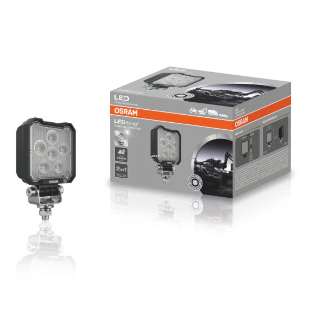 Az Osram LEDriving Cube WL VX100-WD egy sokoldalúan használható, nagy teljesítményű LED munkalámpa, amelyet kifejezetten a legnehezebb környezetekhez terveztek. Kompakt, kocka alakú kialakítása ellenére akár 2000 lumen fényáramot biztosít, 6000 Kelvin színhőmérséklet mellett, amely nappali fényhez hasonló világítást nyújt sötét, nehezen belátható területeken. A széles fényeloszlásnak köszönhetően akár 56 méteres látótávolságot biztosít, így ideális választás mezőgazdasági, építőipari, haszongépjárműves és terepjárós használatra is. A munkalámpa IP6K8 és IP6K9K minősítéssel rendelkezik, így kiválóan ellenáll a víznek, pornak, ütődésnek, hőingadozásnak és állandó rezgéseknek. Strapabíró öntött alumínium háza és törésálló polikarbonát lencséje biztosítja a tartósságot és a hosszú élettartamot. A lámpa beépített túlhevülés- és polaritásvédelemmel van ellátva, valamint ECE R148 szerinti jóváhagyással rendelkezik tolatófényként, de más célú közúti használatra hivatalosan nem alkalmas. A 12/24 V-os feszültségtartomány lehetővé teszi a széles körű kompatibilitást különféle járműtípusokkal, a 20 W névleges teljesítmény pedig hatékony és gazdaságos működést biztosít. A lámpa szabványos rögzítőkonzollal együtt kerül szállításra, így egyszerű a telepítése. A 2 az 1-ben funkció révén első és hátsó használatra is alkalmazható, így egyetlen eszközzel többféle igény is lefedhető. Az Osram több mint 100 éves világítástechnikai tapasztalata és innováció iránti elkötelezettsége garantálja a termék minőségét. Az Osram már 1919 óta formálja az autóipari világítás jövőjét, és ezzel a LED munkalámpával a modern technológia és a hagyományos megbízhatóság ötvöződik. Azok számára ideális, akiknek fontos a professzionális világítás a mindennapi munkájuk során, akár a mezőn, az építkezésen vagy távoli területeken. Az Osram LEDriving Cube WL VX100-WD a tökéletes választás mindazoknak, akik egy kompakt, mégis kimagasló teljesítményt nyújtó munkalámpát keresnek, amely hosszú távon is megbízható társa lesz a nehéz feladatokban. Válaszd ezt a lámpát, ha számodra a megbízhatóság, a teljesítmény és a tartósság nem csupán előny, hanem alapelv.