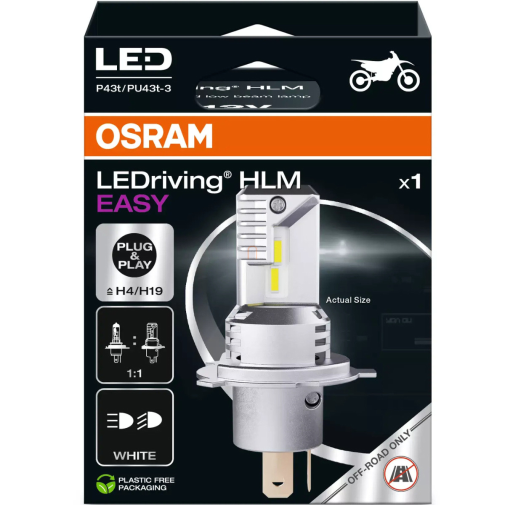 Az Osram LEDriving HLM Easy H4/H19 LED fényszóró ideális megoldás azok számára, akik motorkerékpárjuk világítását szeretnék egy modernebb, hatékonyabb és stílusosabb technológiára cserélni. Ez a kifejezetten motorkerékpárok számára fejlesztett LED izzó tökéletesen helyettesíti a hagyományos H4 vagy H19 halogén fényszórókat, miközben látványos hidegfehér fényt biztosít, amely nemcsak esztétikus, hanem funkcionális is. A 6500 Kelvin színhőmérsékletű világítás nappali fényhatást kelt, ami jelentősen javítja a vezetési élményt és a biztonságot sötétben vagy kedvezőtlen látási viszonyok között. Az izzó fényárama tompított fénynél 1100 lumen, távolságinál pedig 1400 lumen, így mindig az adott közlekedési helyzethez igazodik, hogy a lehető legjobb látótávolságot biztosítsa. A 12 V-os rendszerhez tervezett izzó névleges teljesítménye 19 watt, és ±25%-os teljesítménytűréssel üzemel, ami rugalmasságot és megbízhatóságot biztosít különféle elektromos rendszerekben is. A P43t foglalatú izzó hossza 81,1 mm, átmérője pedig 21,5 mm, így a mérete és csatlakozása megegyezik a legtöbb halogén elődjével, ezzel biztosítva az egyszerű, adapter nélküli beszerelést. Az Osram által fejlesztett nagysebességű ventilátoros aktív hűtőrendszer gondoskodik arról, hogy a lámpa működés közben is optimális hőmérsékleten maradjon, és hosszú távon is maximális fényerőt biztosítson. Az akár 1000 órás élettartam jelentősen felülmúlja a hagyományos halogén izzók várható üzemidejét, ezáltal hosszabb távon is megbízható választás. Az Osram LEDriving HLM Easy H4/H19 LED izzó ideális választás azoknak a motorosoknak, akik prémium minőségű világítást keresnek nem közúti használatra, legyen szó sport-, hobbi-, túra- vagy terepmotorról. A termék nem rendelkezik ECE jóváhagyással, így hivatalosan közúti forgalomban nem használható, kizárólag olyan járműveken, amelyeket nem közúti környezetben üzemeltetnek. Nem ajánlott azok számára, akik motorkerékpárjukat kizárólag közúton kívánják használni, mert a beépítés szabálytalan lehet és biztosítási problémákat okozhat. A LED technológia, az egyszerű telepítés, a hosszú élettartam és a megnövelt fényteljesítmény kombinációja révén az Osram LEDriving HLM Easy H4/H19 az egyik legjobb választás a modern motorkerékpár-világítások piacán – stílusos megjelenést és megbízható működést kínál minden motoros számára, aki nem ismer kompromisszumot.