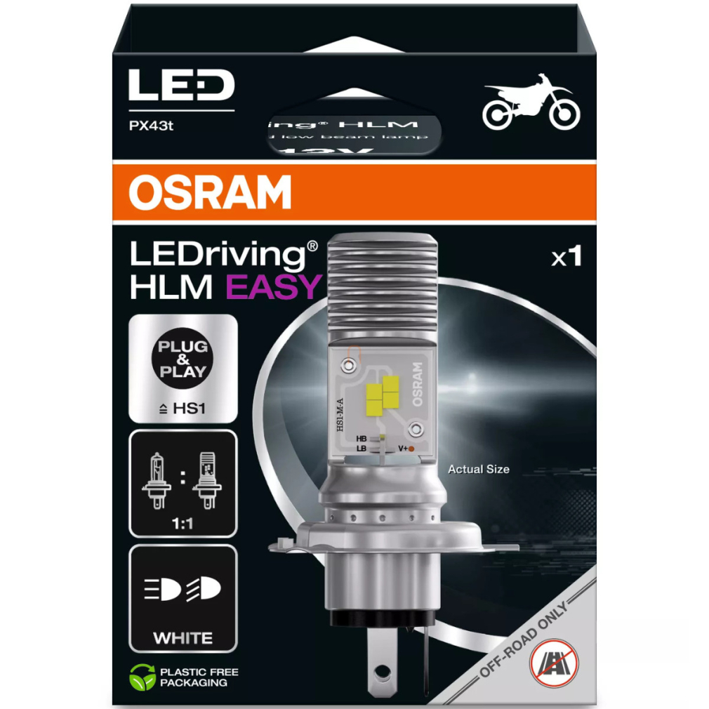 Az Osram LEDriving HLM Easy HS1 LED fényszóró tökéletes választás azoknak a motorosoknak, akik hagyományos világítás helyett megbízható, korszerű és stílusos fényforrást keresnek motorkerékpárjuk számára nem közúti használatra. Ez a modell kifejezetten a HS1 halogénizzók kiváltására készült, amelyet gyakran alkalmaznak kisebb motorkerékpárokban és robogókban. A 12 V-os tápfeszültségű, AC/DC kompatibilis LED izzó tompított fény esetén 500 lumen, távolsági állásban pedig 650 lumen fényáramot biztosít. A 6000 Kelvin színhőmérsékletű, hidegfehér fény nappali fényhatást kelt, amely javítja a látási viszonyokat sötétedés után, párás időben vagy árnyékos útviszonyok között. A fény eloszlása optimalizált, így csökkenti a vakítás veszélyét, miközben a távolabbi tárgyak észlelése is könnyebb, ezáltal gyorsabb reakcióidőt biztosít a motoros számára. A termék beépített aktív hűtéssel rendelkezik, amely megbízhatóan vezeti el a hőt, így biztosítva az állandó teljesítményt és a hosszú élettartamot. Kompakt méretének – 88 mm hosszúság és 21 mm átmérő – köszönhetően a legtöbb motorkerékpárba egyszerűen beépíthető, anélkül, hogy módosításra vagy extra alkatrészekre lenne szükség. A PX43t foglalat révén a telepítés gyors és problémamentes. A LED technológia további előnye, hogy jelentősen kevesebb karbantartást igényel, mint a hagyományos halogén izzók, így időt és pénzt takaríthatsz meg hosszú távon. Az Osram LEDriving HLM Easy HS1 azoknak ajánlott, akik járművüket elsősorban hobbi- vagy sportcélokra használják zárt pályákon, ipari területeken, vagy éppen mezőgazdasági munkákhoz. Nem javasolt azoknak, akik járművüket kizárólag közúton használják, mivel a termék nem rendelkezik ECE jóváhagyással, így közúti forgalomban történő használata hivatalosan nem megengedett. Az Osram LEDriving HLM Easy HS1 LED fényszóró prémium fényminőséget, modern megjelenést és kiváló megbízhatóságot kínál – egy olyan választás, amely a motorozás élményét és biztonságát is képes új szintre emelni, ha valóban számít a látótávolság és a tartósság.