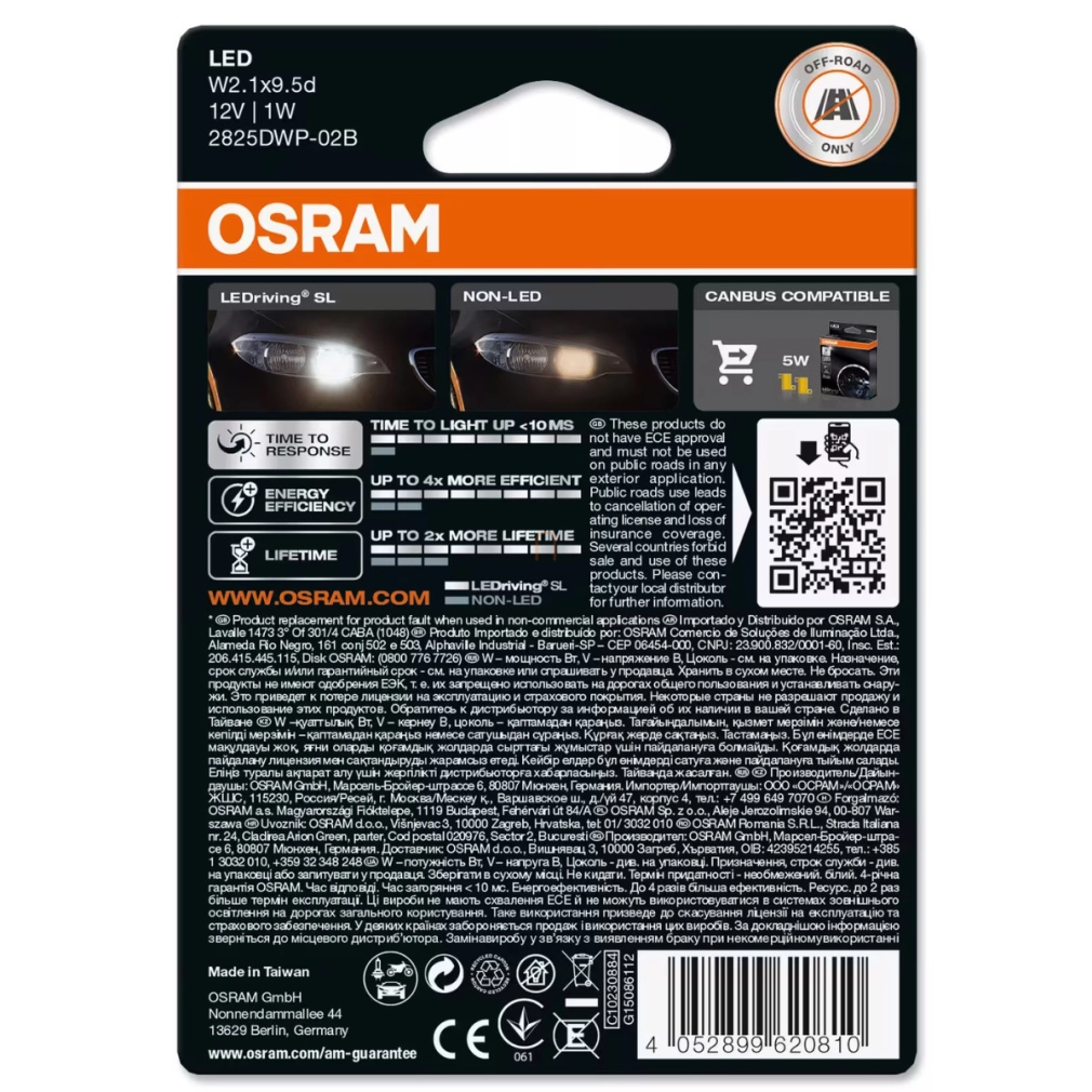 OSRAM LEDriving SL W5W, intenzív hidegfehér fény, energiatakarékos LED autólámpa, plug & play megoldás, 2825DWP-2BL