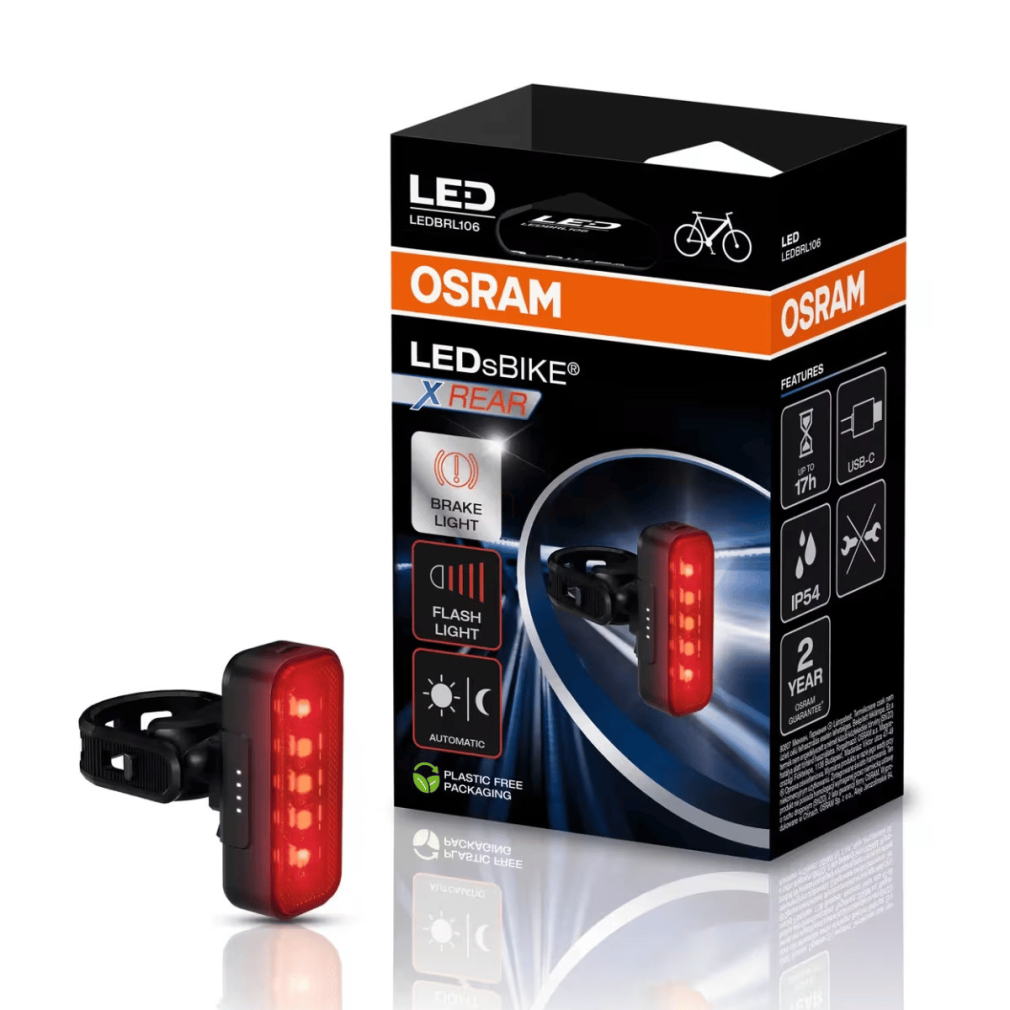 Az Osram LEDsBIKE X Rear intelligens hátsó kerékpárlámpa erős piros LED-del a jobb láthatóságért. Több világítási mód (folyamatos, villogó, automata), beépített féklámpa funkció a nagyobb biztonságért. USB-C tölthető, hosszú üzemidővel rendelkezik, és IP54 védelemmel ellenáll az esőnek és fröccsenő víznek. Egyszerű, szerszám nélküli felszerelés, ideális mindennapi városi és túrakerékpározáshoz.