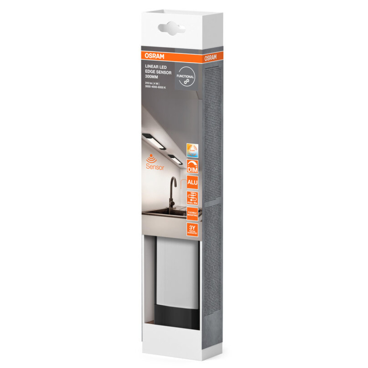 Szabályozható pultvilágító LED lámpa szenzoros kapcsolóval, 35 cm, fekete - Osram Linear Angle Frameless Sensor, 3000-4000-6500 K, 320 lm, állítható színhőmérséklet és fényerősség, 5 W, 220-240 V, 1.5 méteres kábellel