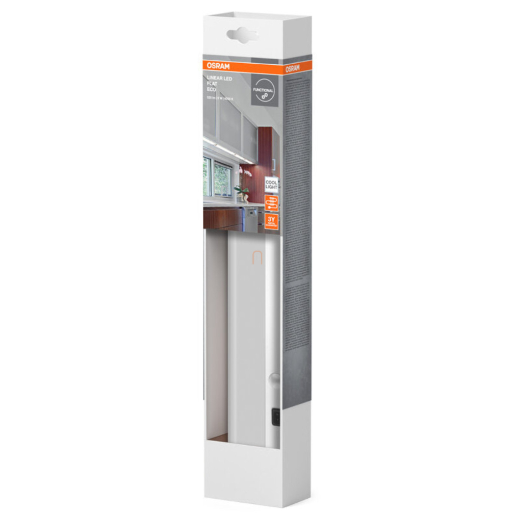 Pultvilágító LED lámpa, 37 cm, ezüst színű - Osram LinearLED Flat Eco, 4000 K, 320 lm, 6 W, 220-240 V