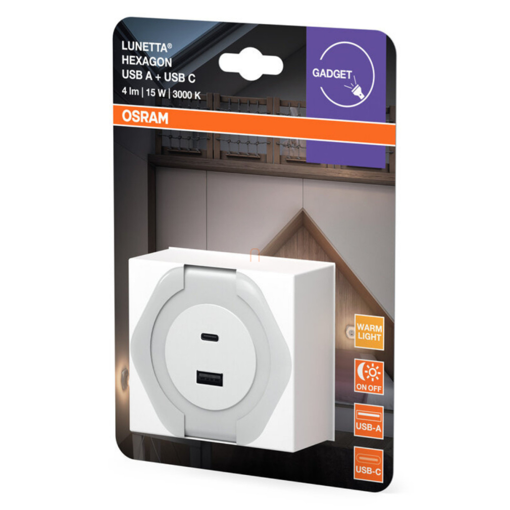 Osram éjszakai LED irányfény 2 USB csatlakozóval, fehér (Lunetta Hexagon)