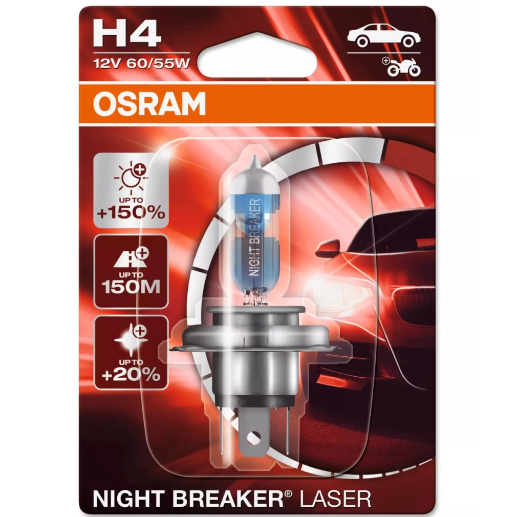 A legnagyobb gyártók versenyében született, a legsötétebb időkre tervezték. Az Osram Night Breaker Laser gen2 elég világos lesz ahhoz, hogy bármilyen útviszonyok közt biztonságos közlekedést nyújtson az éjszakai vezetés során. A Night Breaker Laser 150% Next Generation termékek a legerősebb világítási jellemzőkkel rendelkeznek. Az innovatív Laser technikának köszönhetően pontosabb világítási képet kapunk az előttünk megvilágított útszakaszon. A gyártói adatoknak megfelelően az új Night Breaker Laser +150% Next Generation izzók, 150%-kal fényesebbek a standard halogén izzókhoz képest. A kiemelkedő világítás értékek nagy részben a megújult gyártástechnológiai megoldásoknak köszönhetőek. Az emelt fényerősség mellett a színhőmérséklet is javult a standard halogénekhez képest, mégpedig 20%-kal fehérebb fényt kapunk, ha az új izzókkal világítunk. Mondhatjuk, hogy jól, hangzik, és ami fontosabb jól is fog kinézni. A lámpák burája speciális, pontos mintát követve került színezésre, a lehető legoptimálisabb fényerősség, és színhőmérséklet eléréséhez. Noha a világűrből még nem lesz látható az új Laser Gen2 család, de az aszfalton a maximumot nyújtja majd a prémium izzók kedvelőinek. A termékcsalád összes tagja ECE engedéllyel rendelkezik, közúti forgalomban használható. A régóta tartó sikeres Osram Night Breaker sorozat legújabb Laser Gen2 150%-os H4 izzója Tc szerinti 400 órás élettartamával vélhetően sikeresebb lesz bármelyik elődjénél. Ha a gyártó által megadott adatokat nézzük, a Night Breaker Laser 150% Next Generation izzókkal szerelt autók fényszórói akár 150 méterrel is távolabb világítanak a standard izzókkal szereltekhez képest, növelve a távolabbi tereptárgyak észlelését. Ha megfordítjuk a képletet, akkor minket is jóval korábban észrevesznek a szembe jövő autósok, ami számunkra szintén előnyt és biztonságot jelent. A fejeléstől függően 3500-4000K színhőmérsékletű Night Breaker Laser 150% Gen2 típusok elég fehérek lesznek ahhoz, hogy kontrasztosabb fényt adjanak, mint standard társaik és jobban kitűnjenek a közlekedésben növelve a biztonságot. Azok, akik az Osram Night Breaker Laser 150% Gen2 családot választják, nagyobb biztonságban érezhetik magukat az éjszakai közlekedés során.