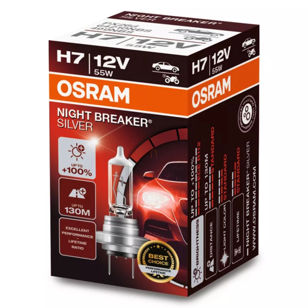 Az Osram Night Breaker Silver sorozat két sikeres fényszóróizzó család a hosszú élettartamú Silverstar 2.0 és a rendkívüli világítási adottságokkal rendelkező Night Breaker Laser Unlimited keresztezése. Az új Night Breaker Silver családban megjelenik a Silverstar 2.0-ra jellemző kiváló ár/érték arány és az Unlimited izzókra jellemző kimagasló világítási tulajdonságok. A Night Breaker Silver sorozat 100%-kal több fényt biztosít az a beavatkozás szempontjából kritikus zónában (50-75 méter az autótól számolva), mint egy standard halogén izzó és átlag élettartama Tc szerint 400-450 óra (50 km/h átlagsebességgel számítva: 20 000 - 22 500 fényszóróval megtett kilométer), ami az emelt fényerejű izzók közt rendkívül jónak mondható.
