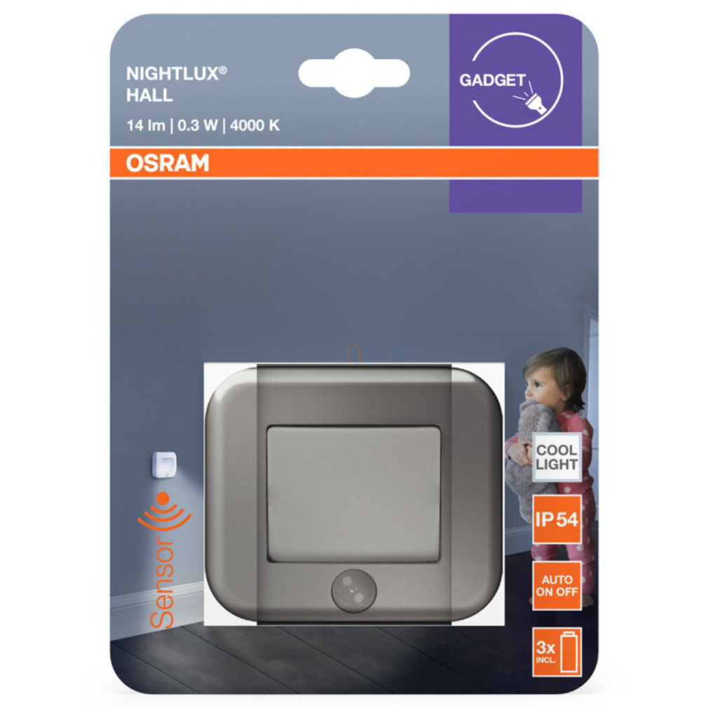 Osram éjszakai LED irányfény fény és mozgásérzékelővel, hidegfehér, elemmel (Nightlux Hall)
