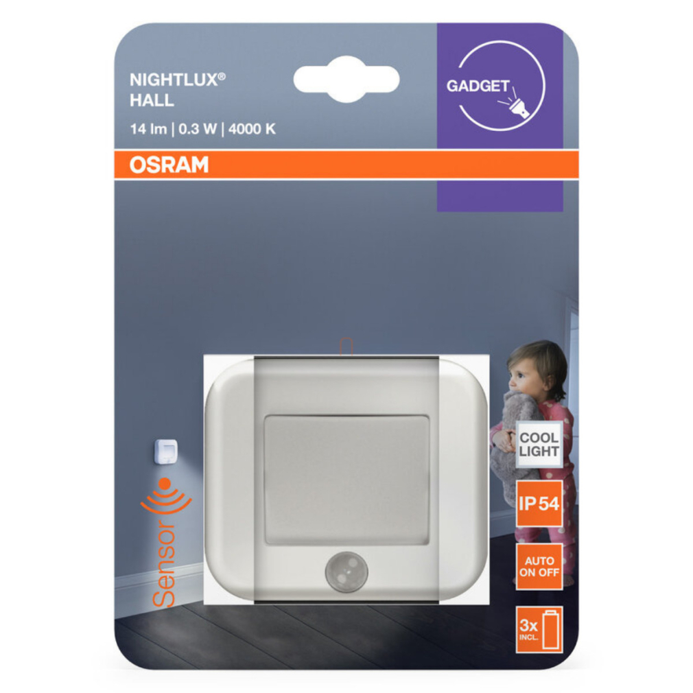 Osram LED irányfény alkonykapcsolóval és mozgásérzékelővel, hidegfehér, elemmel (Nightlux Hall)