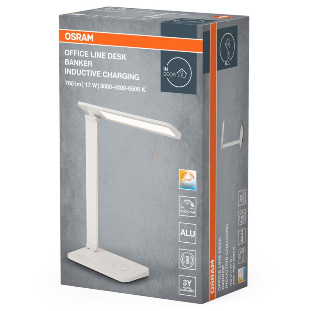 Szabályozható íróasztali LED lámpa, 37,4 cm - Osram Office Line Desk Banker, 3000/4000/6500 K, 651 lm, állítható fényerősség és színhőmérséklet, 17 W, 1,8 méteres kábellel, 220-240 V